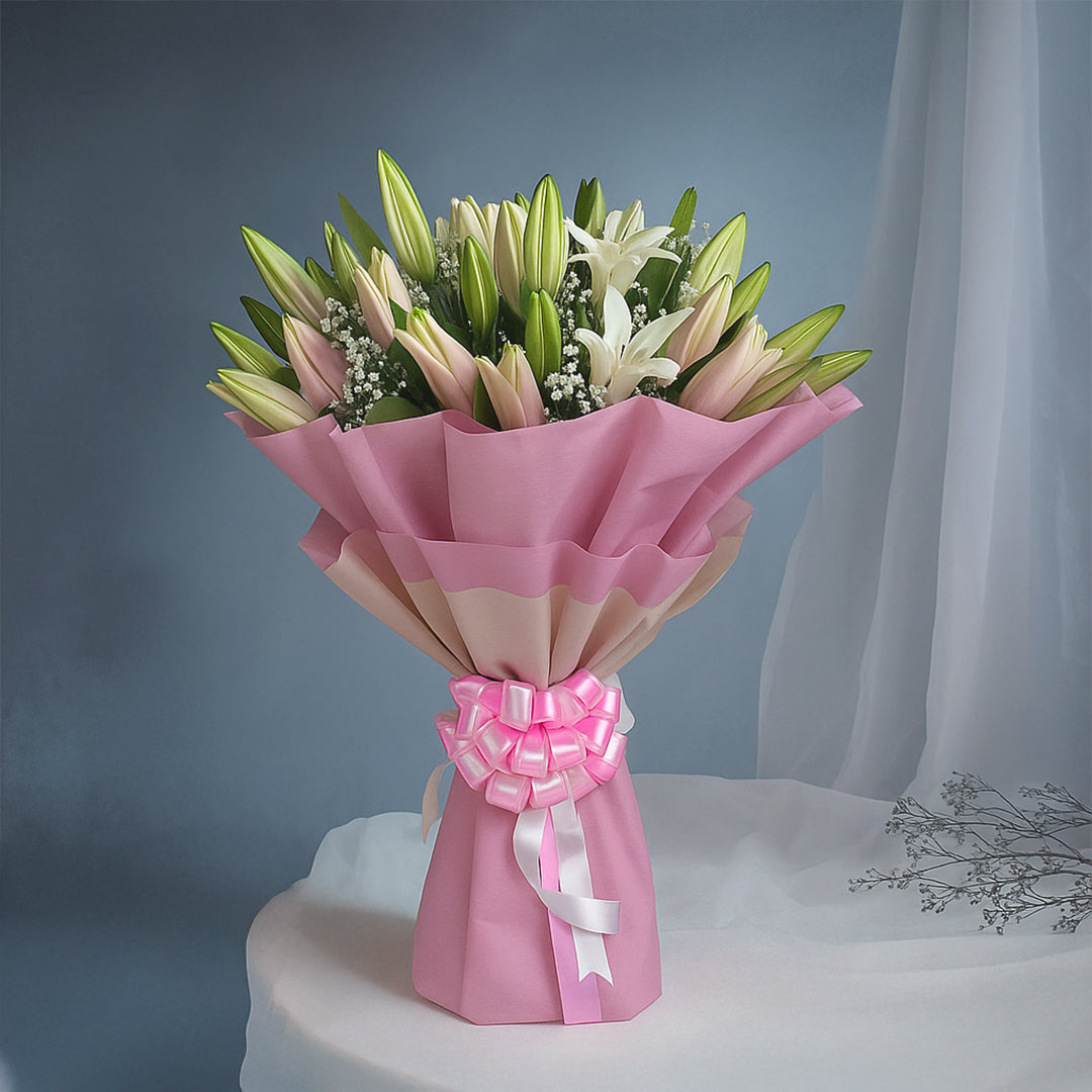 3 stems of fresh Oriental lilies (multiple blooms per stem)