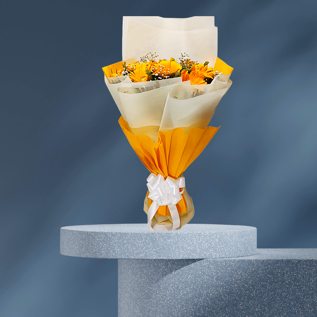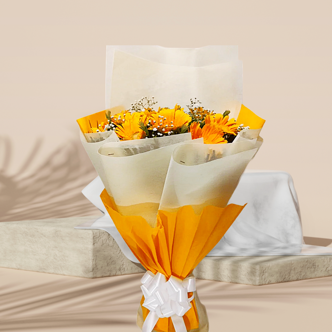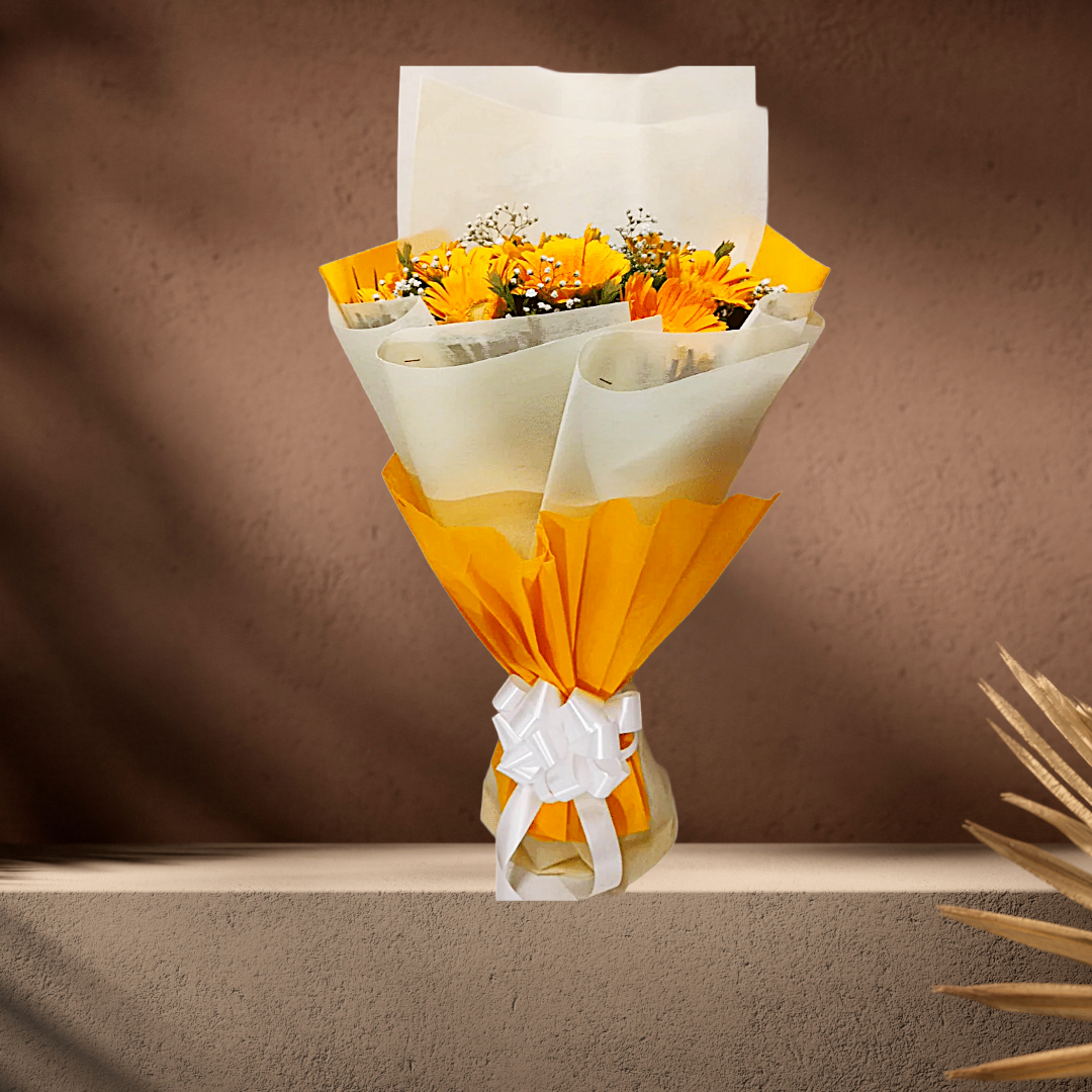 Bright, cheerful, and full of warmth, Sunny Smiles is a joyful bouquet of vibrant yellow gerberas that radiates happiness. Fresh and uplifting, this bouquet is perfect for spreading positivity, celebrating small wins, or simply making someone’s day brighter.