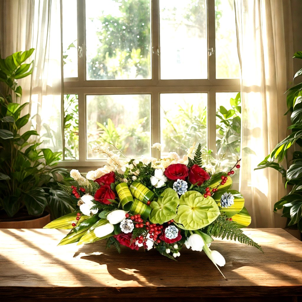 Don’t place the flower arrangement under direct sunlight or near any other source of excessive heat or directly under the fan.