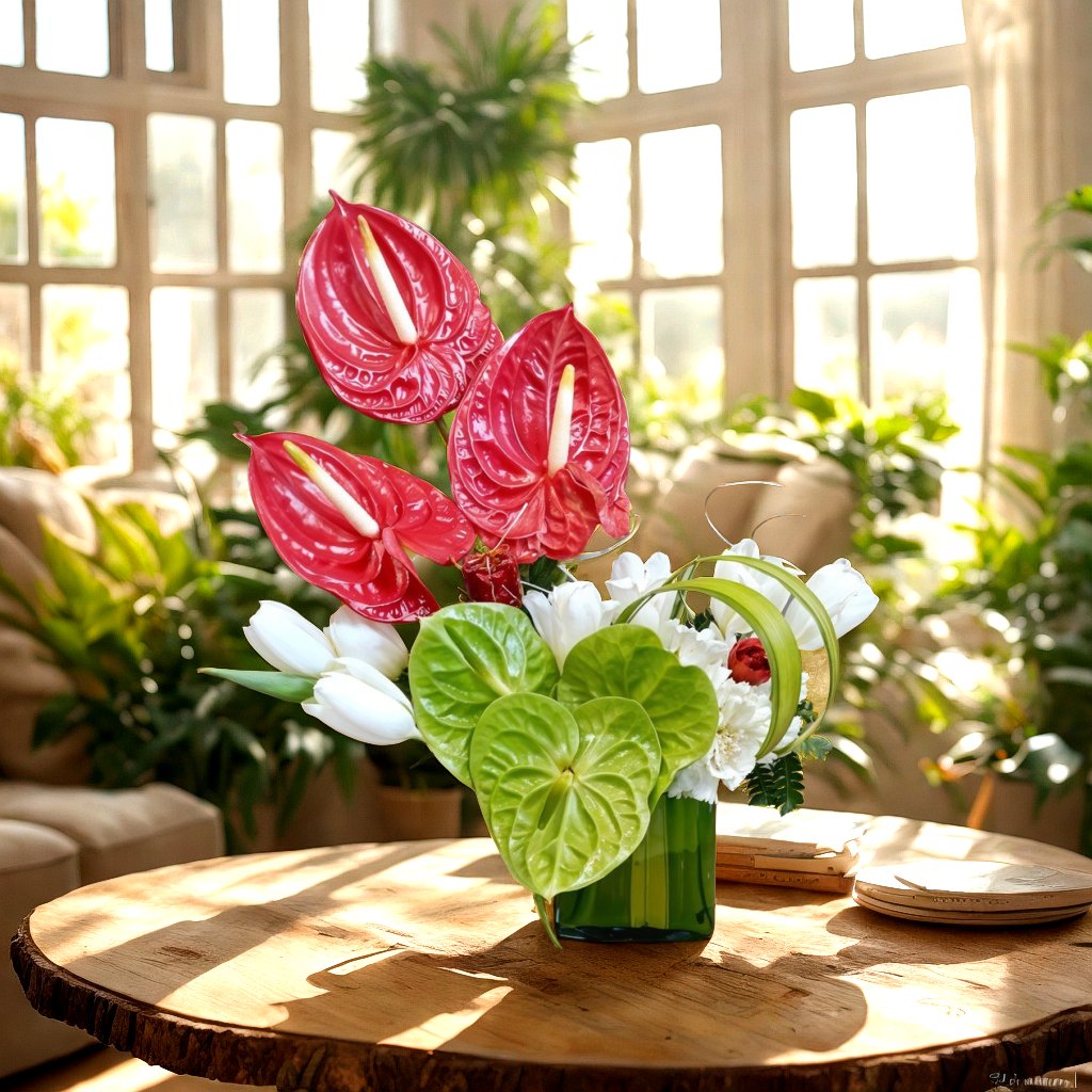 Don’t place the flower arrangement under direct sunlight or near any other source of excessive heat or directly under the fan.