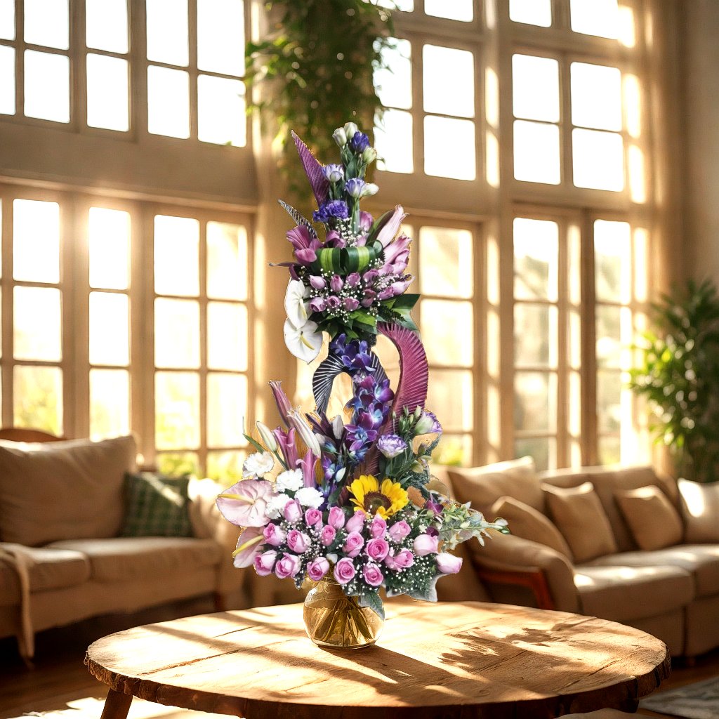 Don’t place the flower arrangement under direct sunlight or near any other source of excessive heat or directly under the fan.