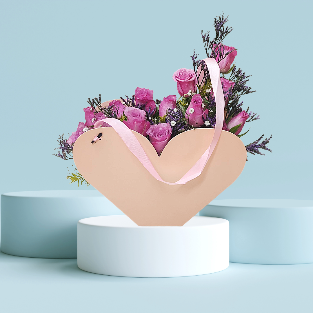 A graceful heart-shaped box filled with 15 soft lilac roses, accented with delicate fillers for added charm. Elegant, romantic, and effortlessly beautiful, Lilac Heart is a perfect expression of gentle love—thoughtfully crafted to make hearts flutter.