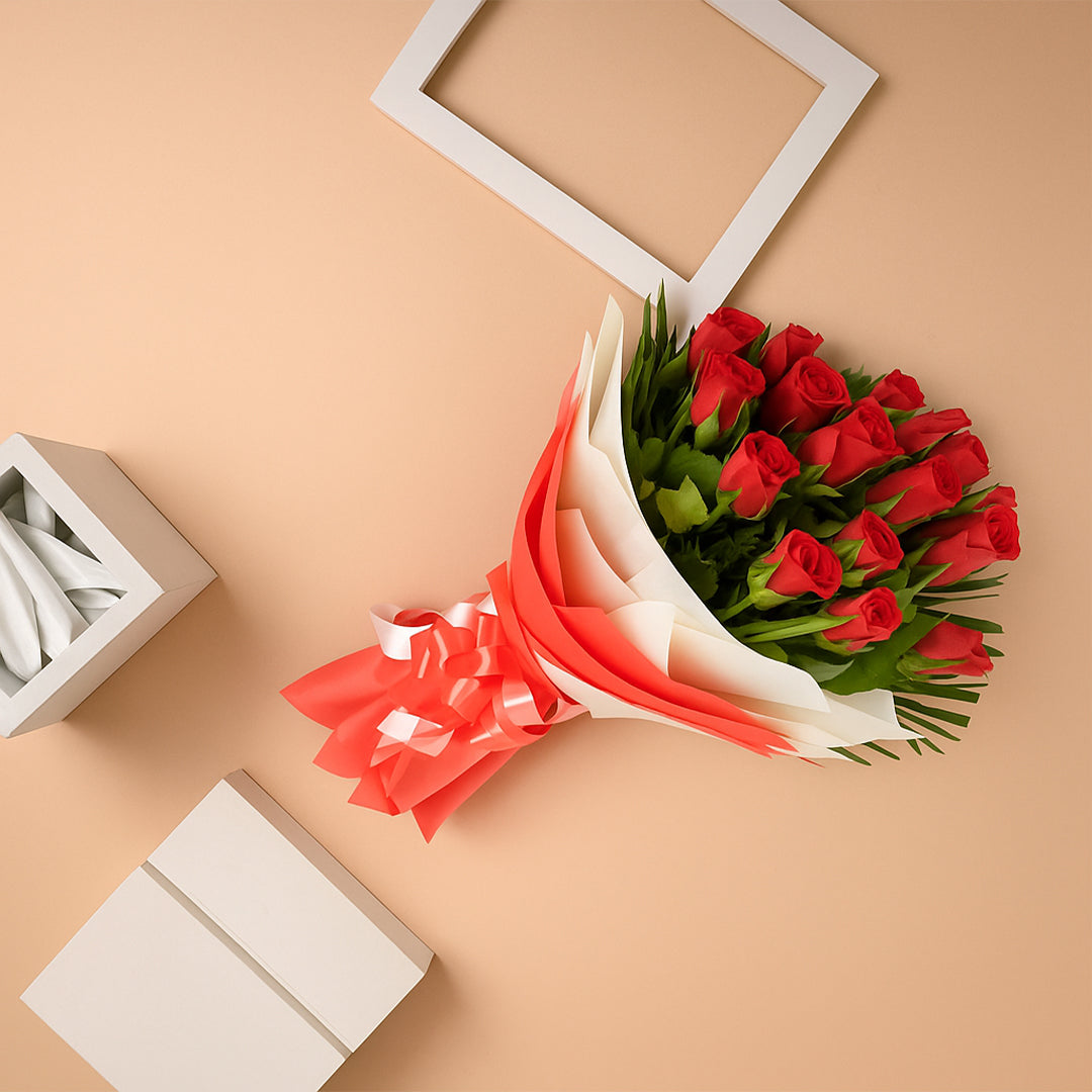 A classic expression of deep love and timeless romance, Red Velvet features 20 lush red roses arranged to create a rich, velvety statement. Elegant, passionate, and endlessly romantic, this bouquet is perfect for grand gestures, anniversaries, and unforgettable declarations of love.